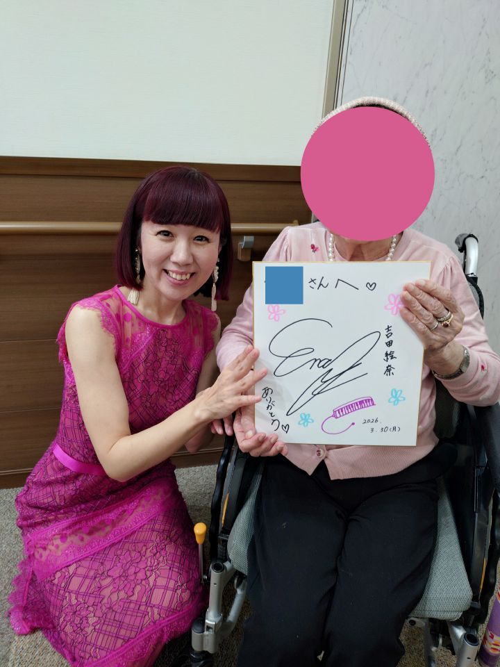 今回が初参加の入居者様が絵奈さんに色紙を書いて頂いてました!